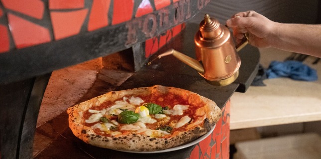 salsa al pistacchio, provola di agerola, mortadella, olio d'oliva, basilico, scaglie di parmigiano